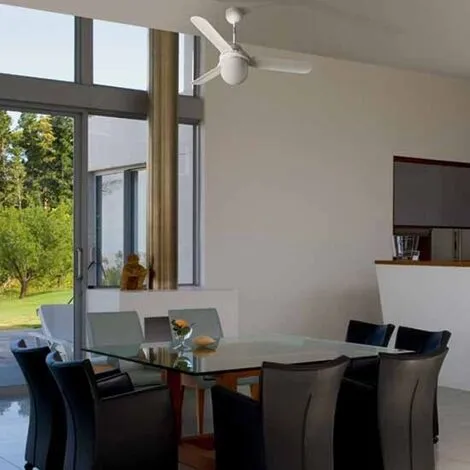 Ventilateur de plafond avec lumière 1xE27. Idéal pour une utilisation dans les chambres, les salons, les magasins, les magasins et autres lieux publics.