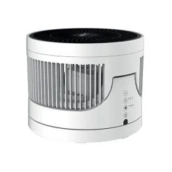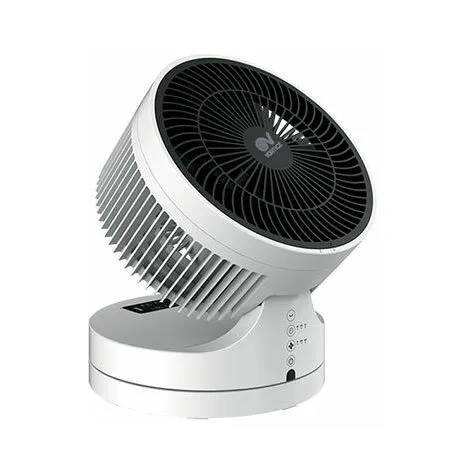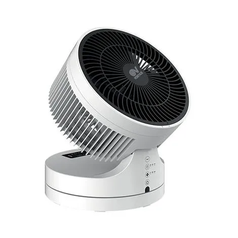 Ventilateur de table oscillant, complet avec tĂ©lĂ©commande, caractĂ©risĂ© par le groupe motorisĂ© articulĂ© par rapport Ă la base de support afin de diriger le flux d’air dans la direction souhaitĂ©e et de minimiser l’occupation de l’espace lorsqu’il n’est pas utilisĂ©.