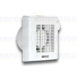 VORTICE – AÉRATEUR HÉLICOÏDAL MURAL, SÉRIE PUNTO• MATERIAL: UV RESISTANT PLASTIC (PREVENTS AGEING CAUSED BY EXPOSURE TO SUNLIGHT).• NOMINAL DIAMETER 120 MM.• MOTOR PROTECTED AGAINST THERMAL OVERLOAD, WITH SHAFT TURNING IN SELF-LUBRICATING BUSHINGS, COUPLED TO SCREW TYPE THERMOPLASTIC IMPELLER WITH WING PROFILE BLADES.• MAXIMUM AIR FLOW: 175 M3/H.• EQUIPPED WITH ELECTRONIC TIMER DESIGNED TO SHUT OFF THE MOTOR AUTOMATICALLY AFTER A SET INTERVAL, SELECTABLE DURING INSTALLATION IN THE RANGE 3’-20’ (DEFAULT SETTING 3’).• IMQ SAFETY AND IMQ PERFORMANCE CERTIFICATIONS.PUNTO Serie M 120/5″ TIMER 11311ABSORBED CURRENT MAX (A): 0,12ABSORBED POWER MAX (W): 20FREQUENCY (HZ): 50INSULATION CLASS: II°IP: X4MAX AMBIENT TEMPERATURE FOR CONTINUOUS OPERATION (°C): 50NOMINAL DIAMETER (MM): 120Ø DISCHARGE HOLE (MM): 119VOLTAGE (V): 220-240WEIGHT (KG): 0,8DELIVERY MAX (L/S): 48,6DELIVERY MAX (M³/H): 175PRESSURE MAX (MMH2O): 4,5PRESSURE MAX (PA): 44RPM: 2100SOUND PRESSURE LEVEL LP [DB (A)] 3M: 39,5SIZE A (MM): 179SIZE B (MM): 181SIZE C (MM): 110SIZE D (MM): 47SIZE E (MM): Ø 119