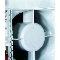 Aspirateur d’air Vortice modèle M 100/4″ Automatic hĂ©licoĂŻdal mural avec système automatique d’ouverture et de fermeture des ailettes de la grille frontale.