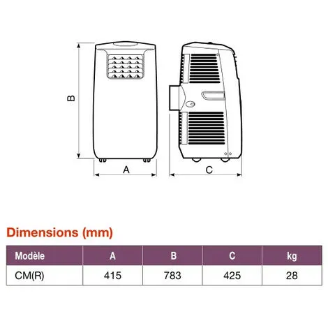 • 4 fonctions : auto – froid – ventilation – déshumidification.
