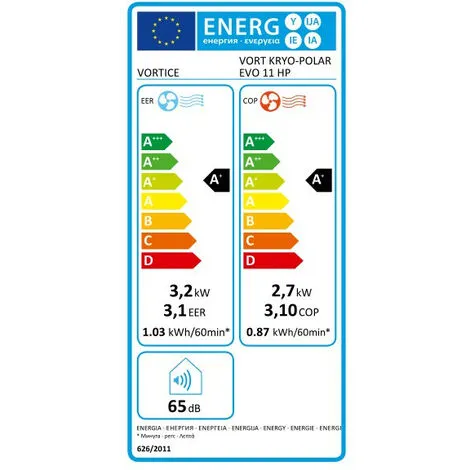Vortice – Climatiseur mobile sur roues pivotantes 3220 W 495 m3/h Classe A+ – Vort Kryo Polar Evo